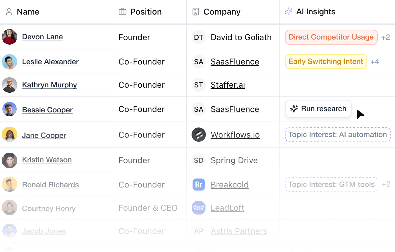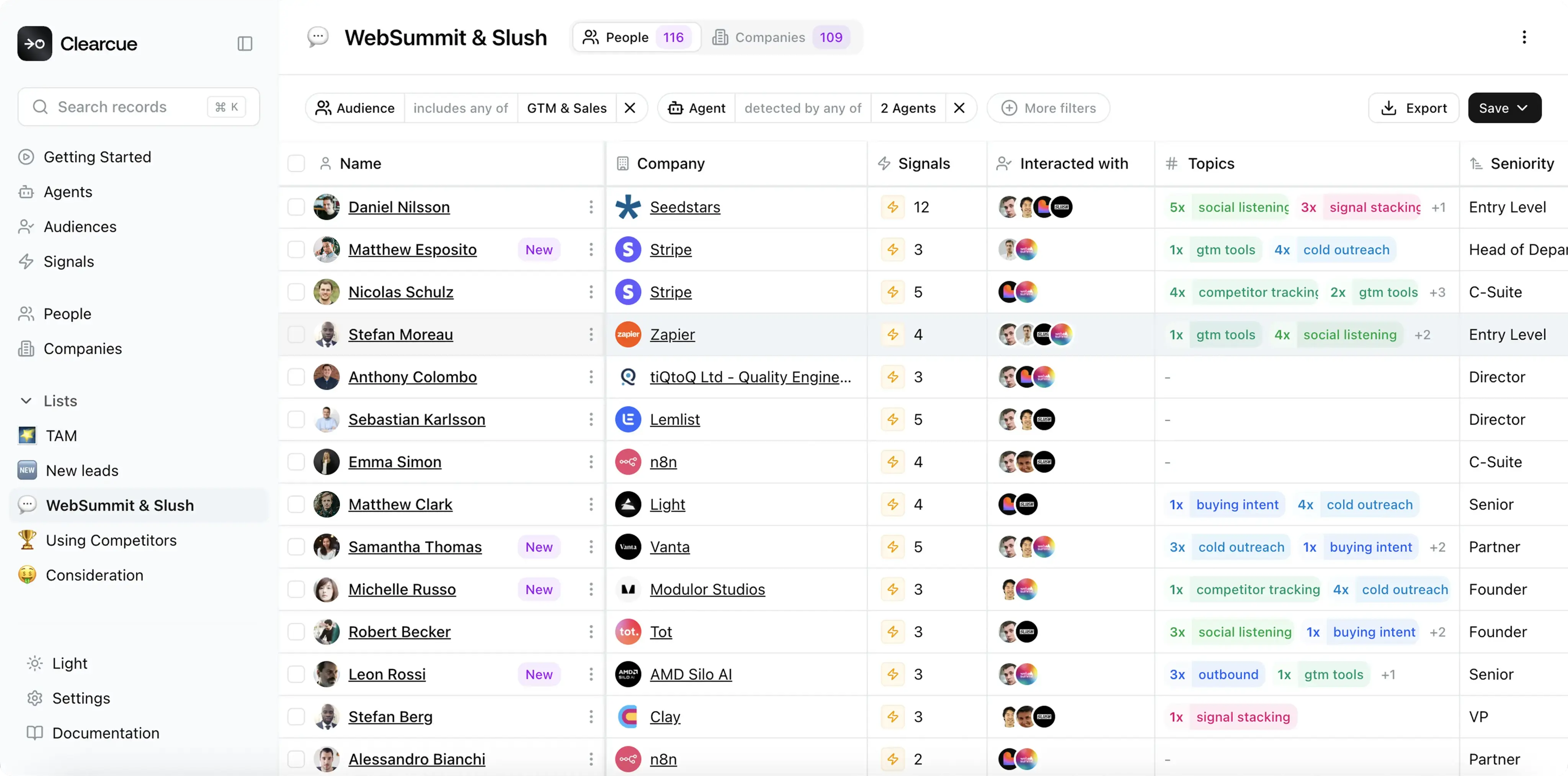 Clearcue combines social signals from your brand, team, competitors, influencers, topics, and events to show real-time intent and find similar leads you’d never spot manually.