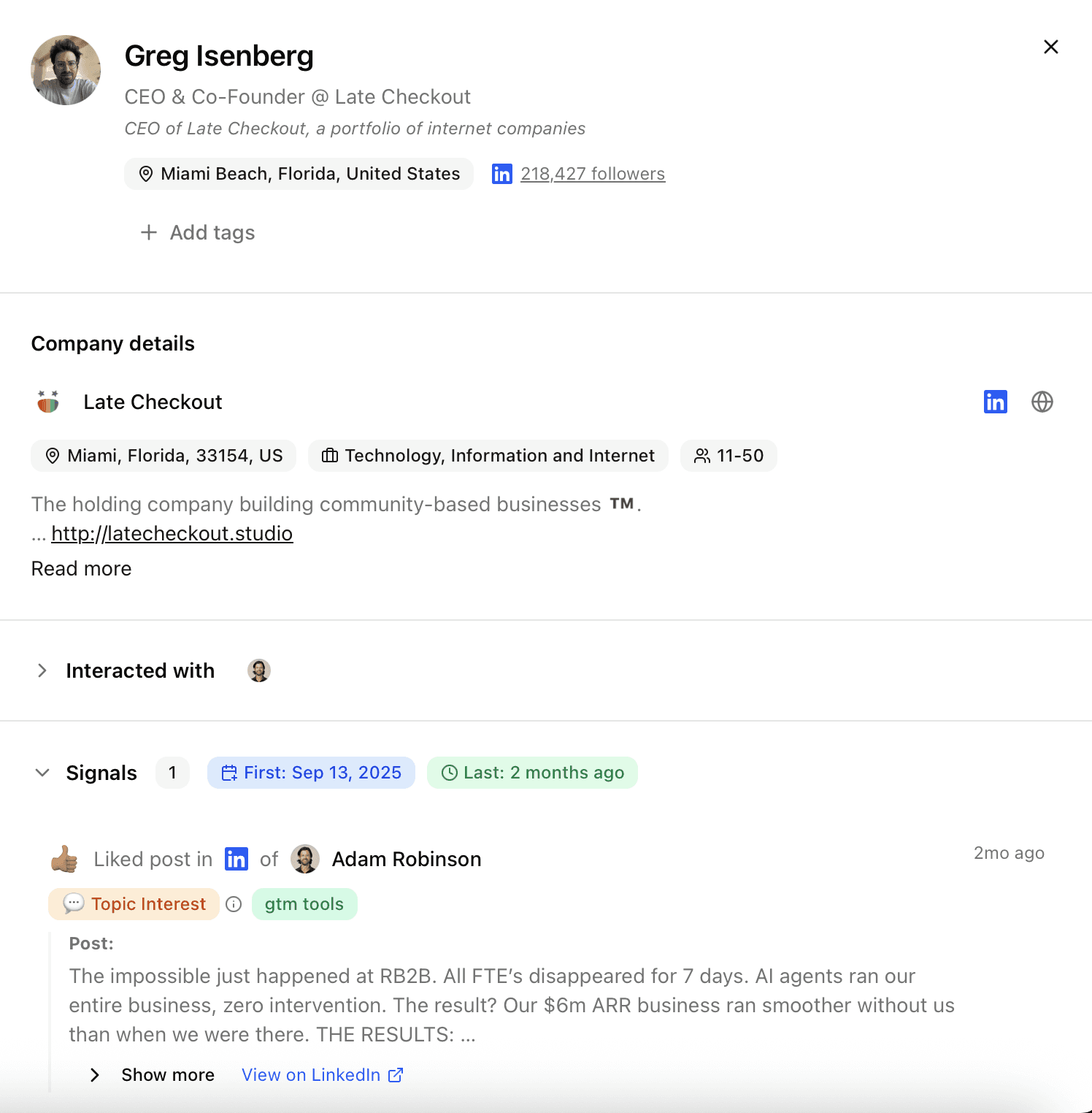 Ever seen someone interesting on LinkedIn and wondered if they’ve already shown up in your signals?
